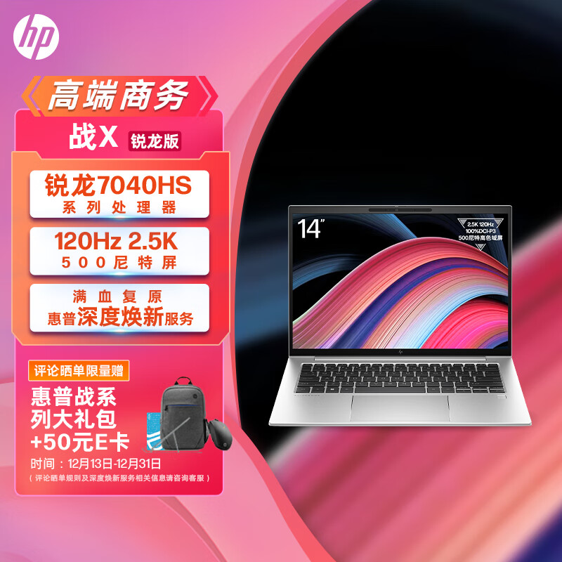 惠普(HP)战X 2023 Zen4锐龙14英寸轻薄笔记本电脑(R7-PRO 7840HS 32G 1T 2.5K 500尼特 2年上门 AI新体验 高性能)5G版价格:6799.00元!