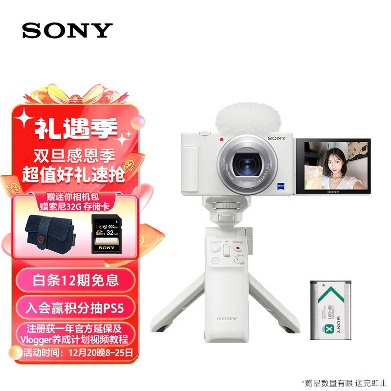索尼(SONY)ZV-1 Vlog数码相机 白色 手柄电池套装(ZV1)4K视频/美肤拍摄/强悍对焦价格:4799.00元!