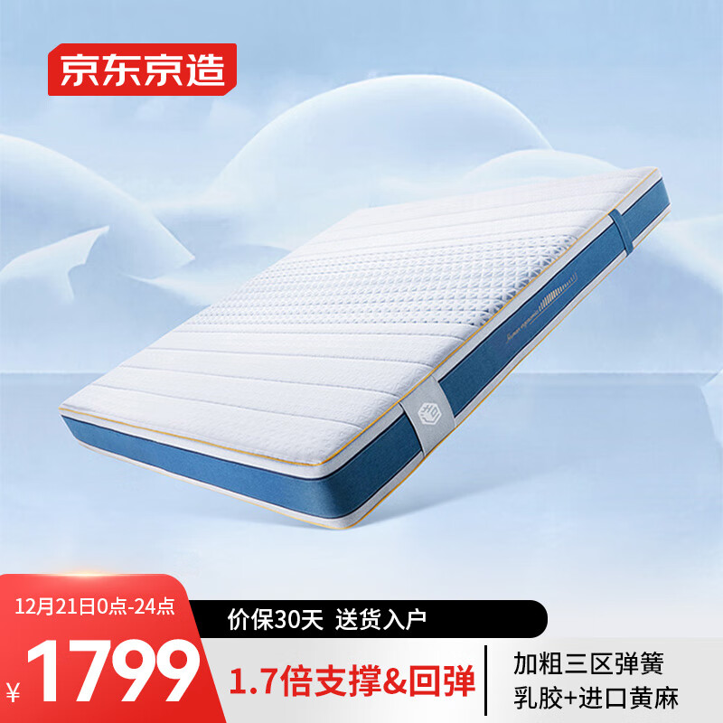 京东京造弹簧床垫 乳胶+黄麻|3D空气纤维|撑腰舒脊 席梦思床垫1.5×2米MH02价格:1999.00元!