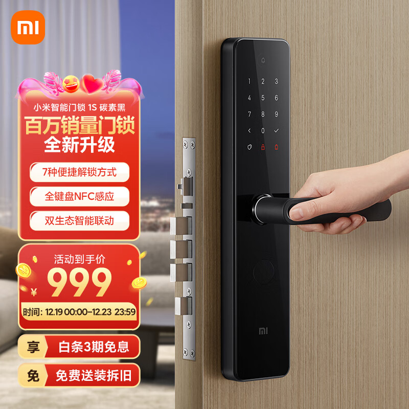 小米 智能门锁 1S标准门锁 碳素黑 指纹锁电子锁密码锁防盗门锁价格:999.00元!