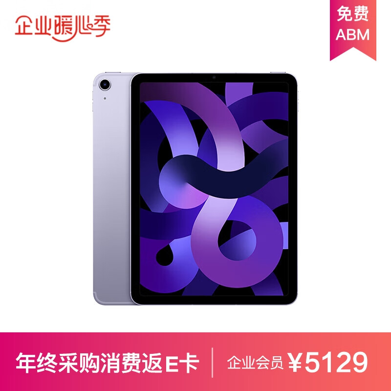 Apple iPad Air 10.9英寸平板电脑 2022年款(64G WLAN+Cellular版/M1芯片 MMEF3CH/A)紫色*企业专享价格:5999.00元!