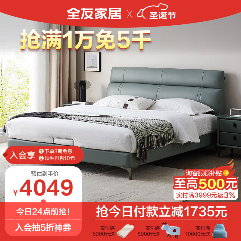 全友家居 进口头层牛皮皮床意式极简1.5米双人床卧室家具105251B价格:5784.00元!