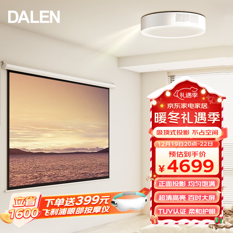 达伦吸顶灯家用投影仪阿拉丁神灯卧室智能家庭影院护眼投影机幕布套餐价格:6299.00元!