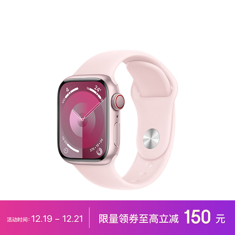 Apple Watch Series 9 智能手表GPS+蜂窝款41毫米粉色铝金属表壳亮粉色运动型表带S/M电话手表S9 MRJP3CH/A价格:3799.00元!