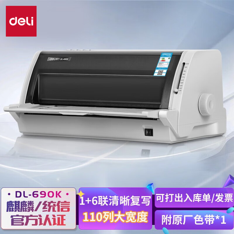 得力(deli) 针式打印机 营改增税控发票打印机 票据电子面单快递单条码 发货出库打印机 DL-690K【7联110列大宽度】前后进纸价格:2499.00元!
