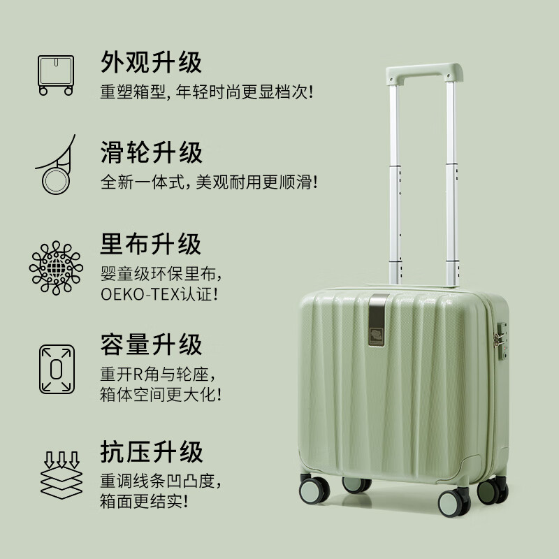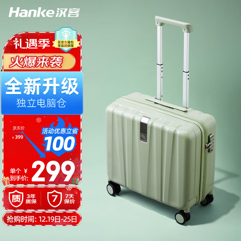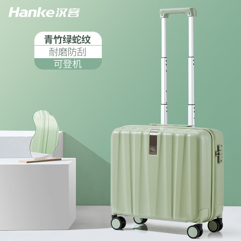 汉客行李箱男拉杆箱女登机旅行箱18英寸青竹绿密码箱镇店之宝再次升级价格:399.00元!