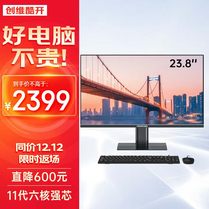 酷开 创维电脑 23.8英寸办公商用家用娱乐一体机台式电脑(11代酷睿i5-11260H 16G 1TB SSD 双频WiFi 蓝牙)价格:2399.00元!