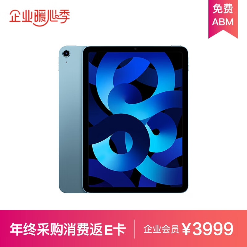 Apple iPad Air 10.9英寸平板电脑 2022年款(64G WLAN版/M1芯片Liquid视网膜屏) 蓝色 MM9E3CH/A*企业专享价格:4799.00元!