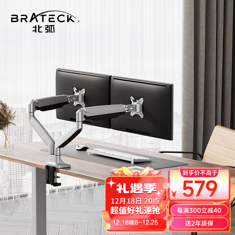 Brateck北弧 显示器支架双屏 电脑显示器支架 双屏支架臂 台式电脑支架升降 显示器增高架 桌面旋转底座LDT10价格:659.00元!