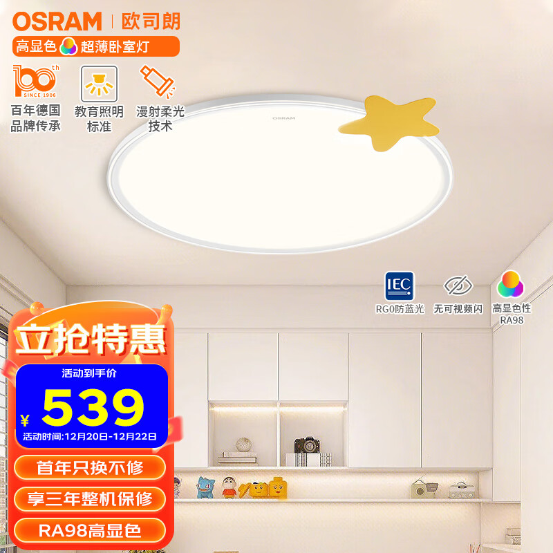 欧司朗(OSRAM)吸顶灯客厅灯遥控调光调色超薄LED顶灯具32瓦卧室灯OSCLQ4013价格:999.00元!