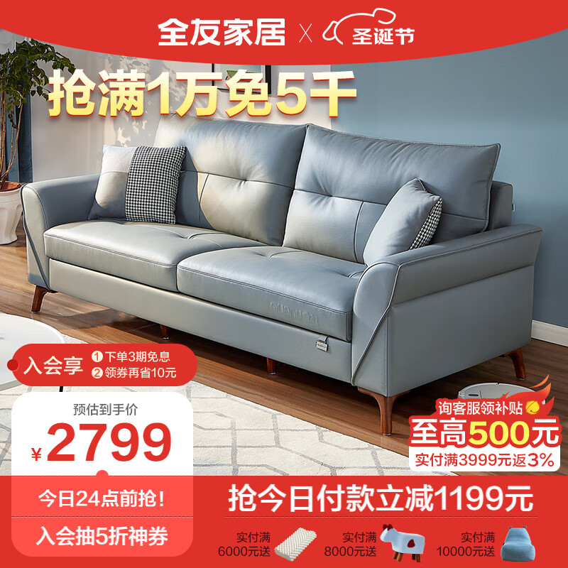 全友家居 皮沙发 进口头层牛皮沙发小户型客厅家具 北欧时尚皮沙发102569A 皮沙发(三人位)价格:3998.00元!