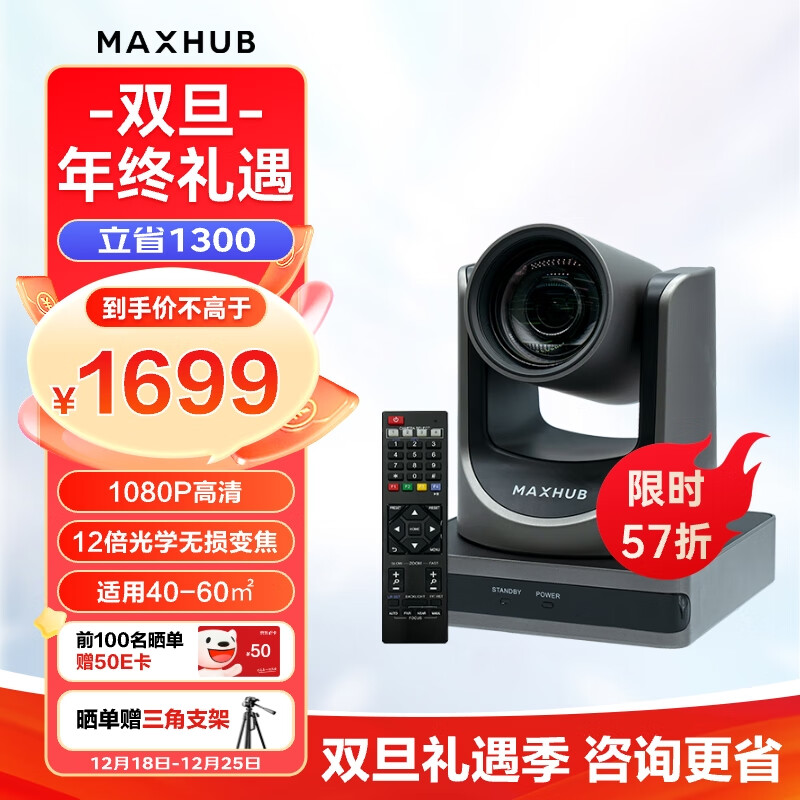 MAXHUB视频会议摄像头/直播摄像机/12倍高清光学变焦1080P云台可旋转/教育网课录播远程会议室解决方案 SC61A价格:1699.00元!