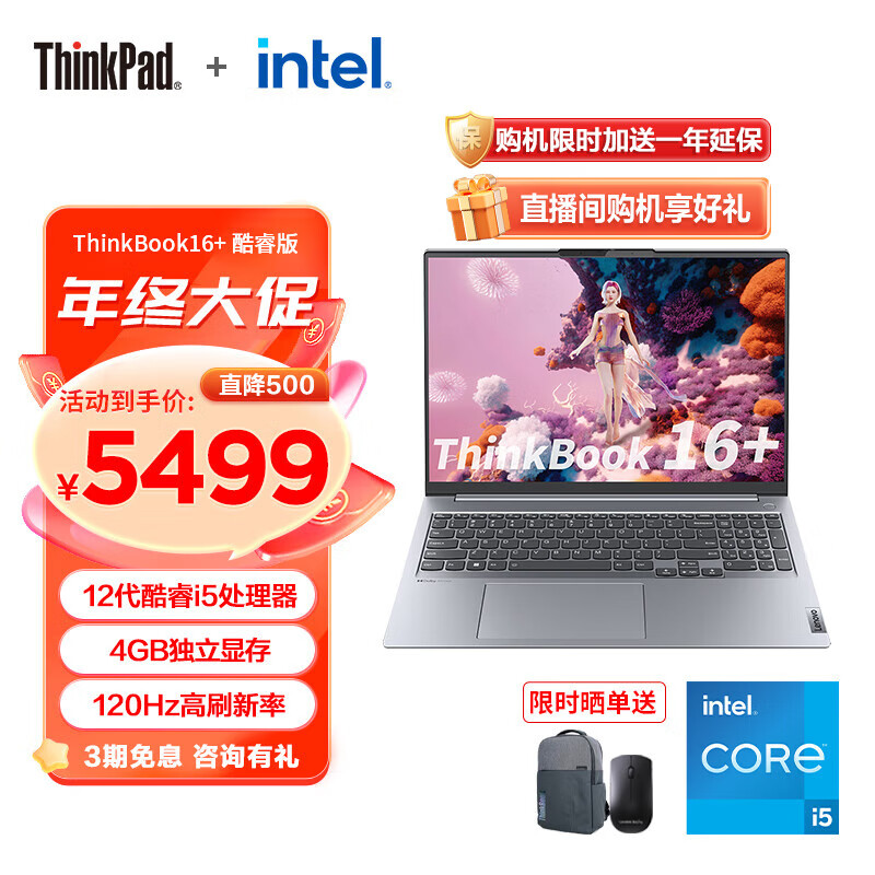 ThinkPad联想ThinkBook 16+ 12代英特尔酷睿处理器16英寸大屏轻薄笔记本 i5-12500H 16G 4G独显 08CD价格:5999.00元!