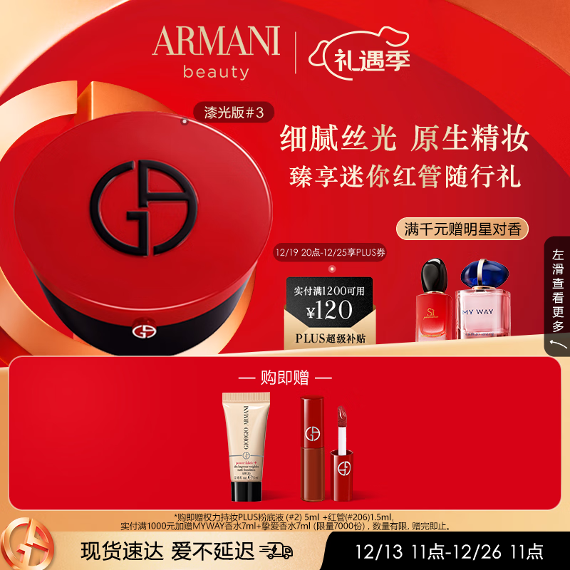阿玛尼红气垫漆光#3自然白 遮瑕持妆防晒粉底液 礼盒圣诞礼物送女友价格:685.00元!