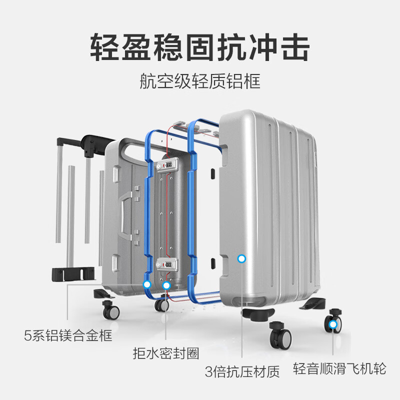 爱华仕行李箱铝框拉杆箱男万向轮登机箱20英寸女旅行箱商务密码箱 灰色价格:649.00元!
