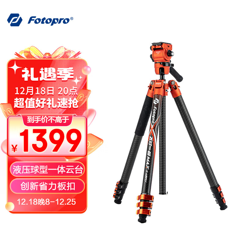富图宝(Fotopro)飞行一号Max Video碳纤维扳扣设计大管径相机微单摄影摄像视频拍摄液压云台专业相机三脚架 火焰橙价格:1399.00元!
