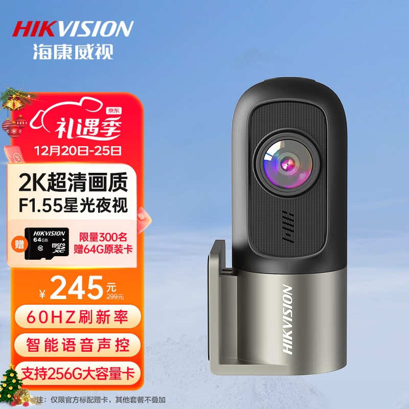 HIKVISION海康威视行车记录仪D1Pro 1440P高清星光夜视F1.55光圈语音声控价格:269.00元!