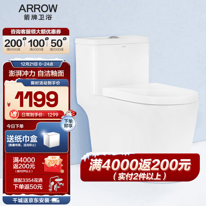 箭牌(ARROW)家用大冲力强承重喷射虹吸隔臭节水马桶缓降连体坐便器AEB12607M价格:1479.00元!