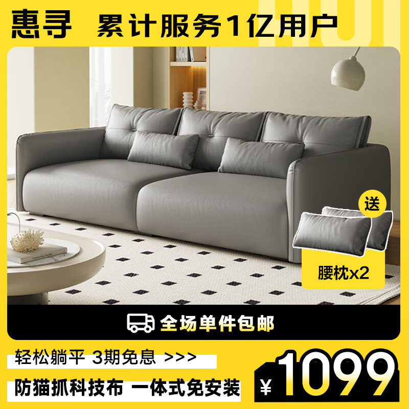 惠寻 京东自有品牌 科技布艺沙发防猫抓小户型客厅直排三人位 2.1米价格:1129.00元!