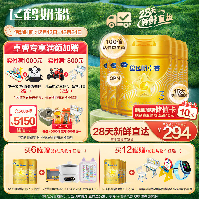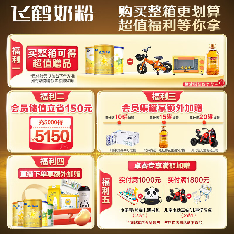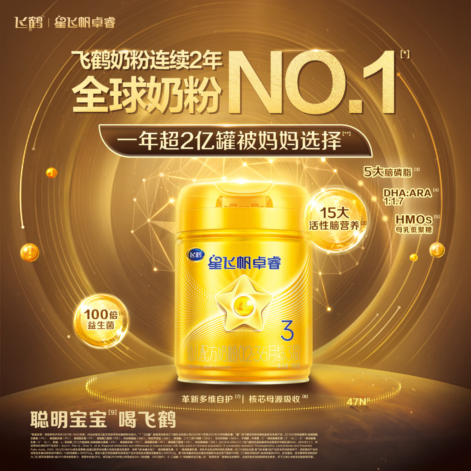 飞鹤【28天新鲜直达】星飞帆卓睿3段幼儿配方奶粉(12-36月)750g*6价格:2004.00元!