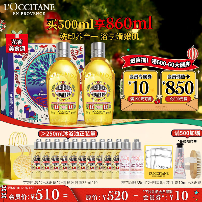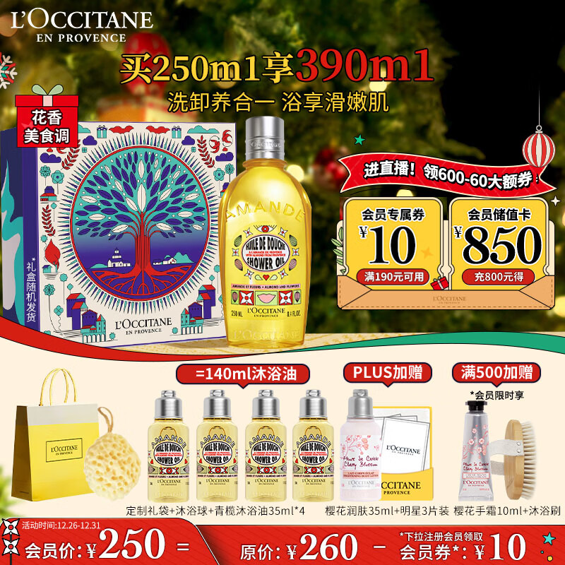 欧舒丹甜扁桃紧致沐浴油250ml礼盒装保湿杏仁胶原滋养送男女友元旦礼物价格:260.00元!