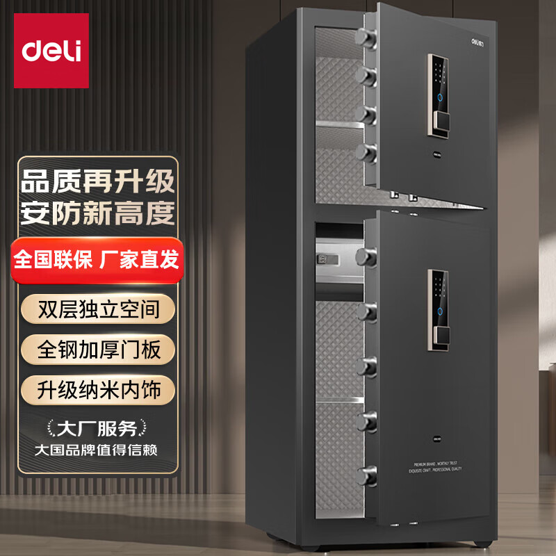 得力保险柜 高150CM双门办公家用保管箱 半导体指纹+触屏密码双重保险 科技布内饰 弘雅AE73-ZM价格:2588.00元!