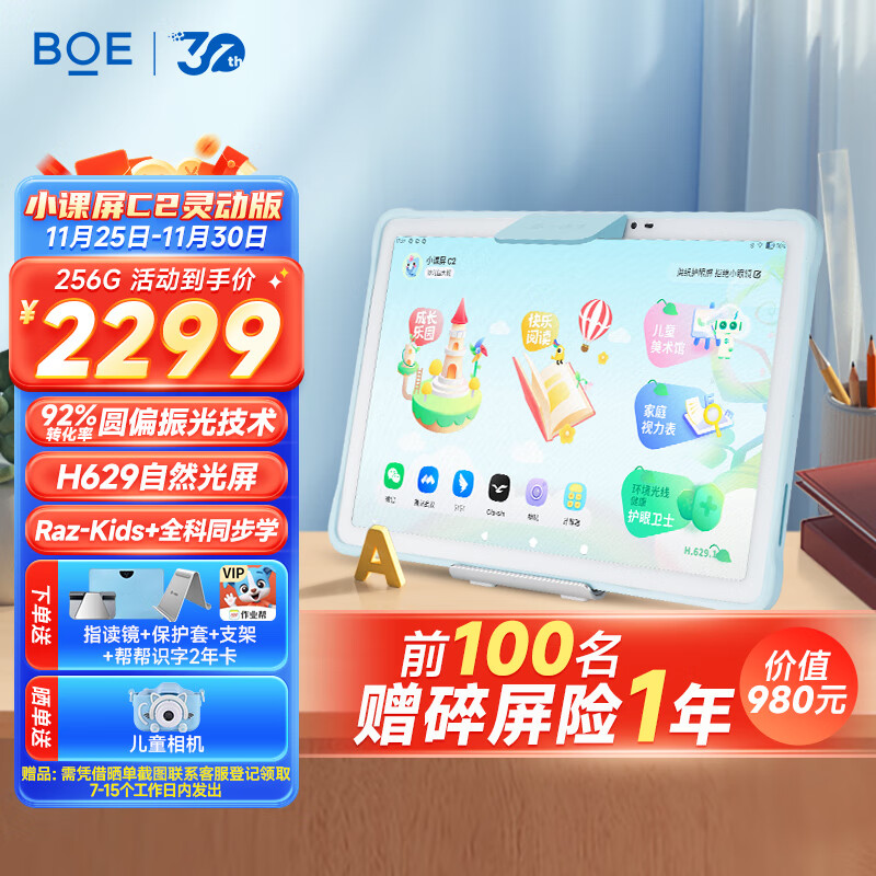 京东方BOE小课屏C2 256G学生学习平板10.1英寸类纸护眼儿童学习机 小学初高中同步点读机早教机家教机 价格:2999.00元!