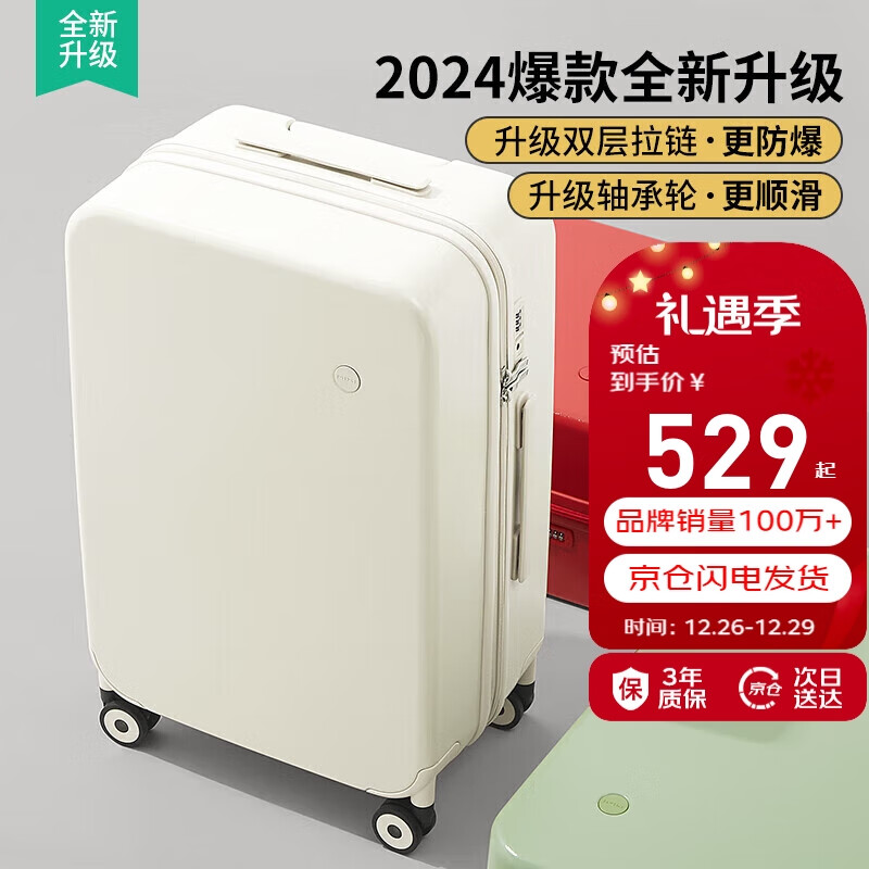 米熙高颜值拉杆箱子行李箱大容量旅行箱男密码箱女大托运箱28英寸烟白价格:579.00元!