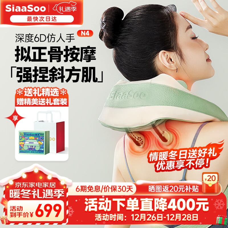 象术(SIAASOO)颈椎按摩器颈部按摩仪颈椎按摩仪肩颈按摩器颈部腰部按摩枕披肩斜方肌 父母男女朋友元旦新年礼物 N4按摩披肩【浅岛绿】价格:1099.00元!