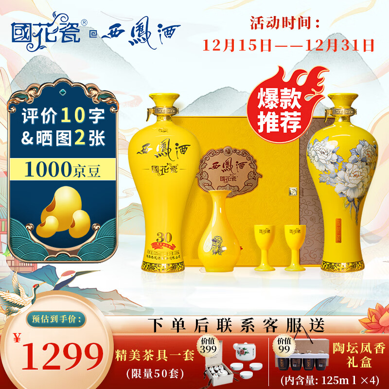 西凤酒30年 国花瓷30年52度陈年凤香白酒礼盒 500ml*2瓶装 陕西特产价格:1299.00元!
