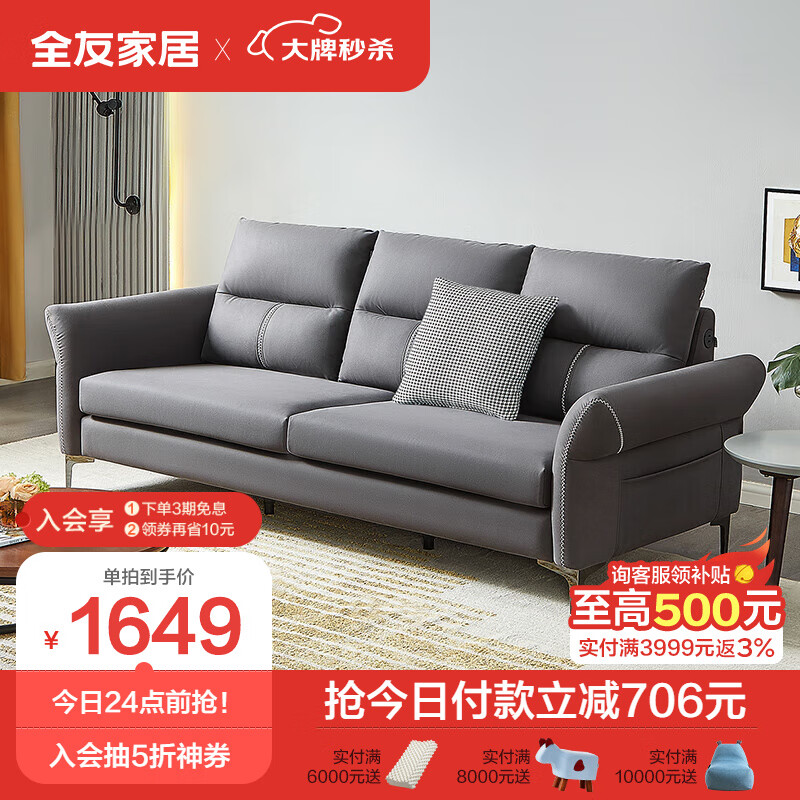全友家居 现代简约usb充电功能科技布可拆洗储物沙发客厅家具102679A价格:2355.00元!