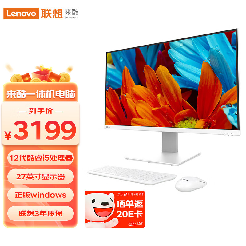 联想来酷 Lecoo一体台式机电脑27英寸办公商务家用 (12代酷睿i5-12450H 16G 512G Windows11 无线键鼠) 白价格:3199.00元!