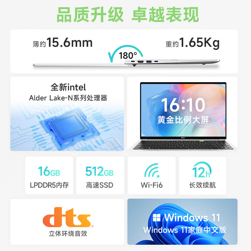 攀升【杨威推荐】2023款P3护眼版英特尔四核16英寸低蓝光高性能笔记本电脑游戏大学生网课设计学习办公手提轻薄本价格:2699.00元!