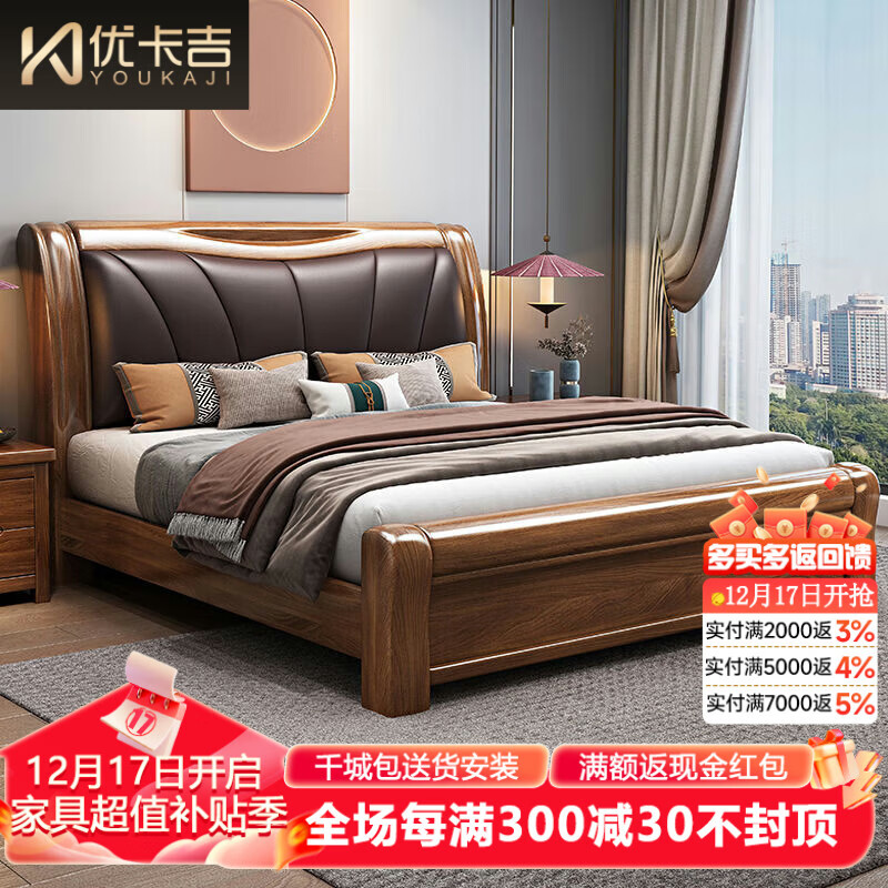 优卡吉新中式主卧双人床软包储物床MJ-2201# 1.8米框架床+床垫+床头柜*1价格:2999.00元!
