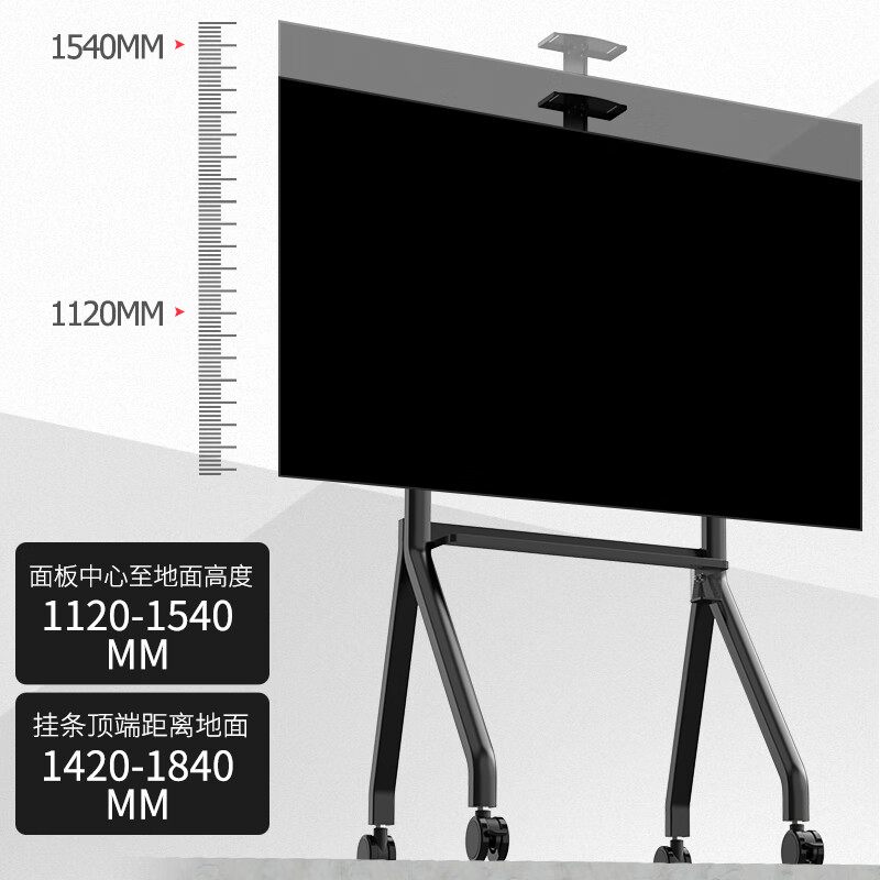 津赢 电视机支架移动推车挂架广告机商用显示器落地支架55-120英寸教学机鸿合视频会议平板一体机支架黑色价格:788.00元!