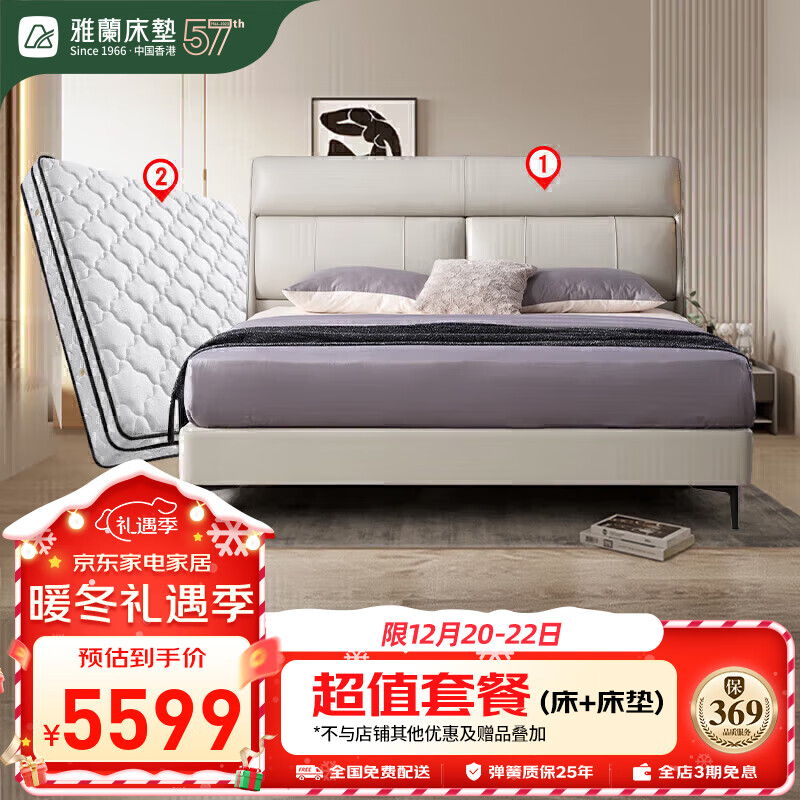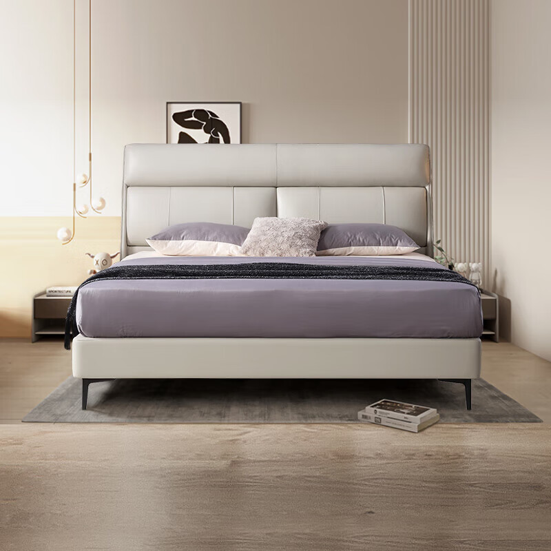 雅兰简约风真皮床主卧靠背可调节双人皮艺床 套餐 伯明翰 1.5*2米价格:6599.00元!