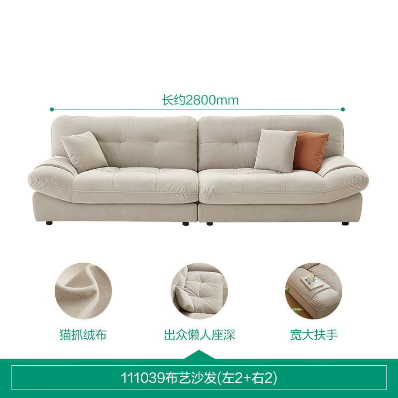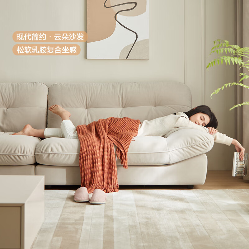全友家居 奶油风布艺沙发客厅乳胶座包防猫爪绒布云朵沙发座具111039价格:4570.00元!