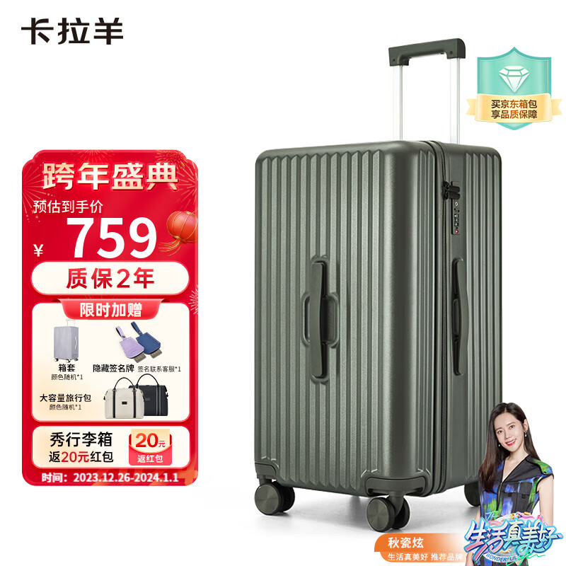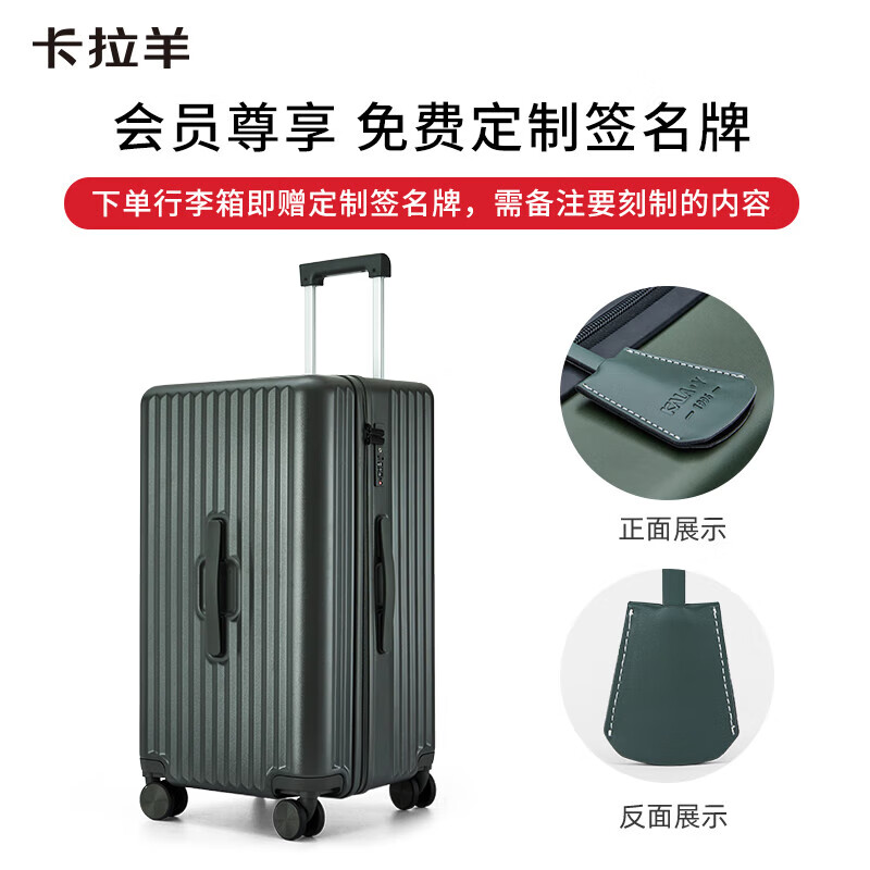 1、十年前买的卡拉羊20寸旅行箱,现在用着质量还很好,这次给孩子住校买,还是选卡拉羊。选的这款,箱体形状加宽条纹,里面有网布,感觉更好一些。