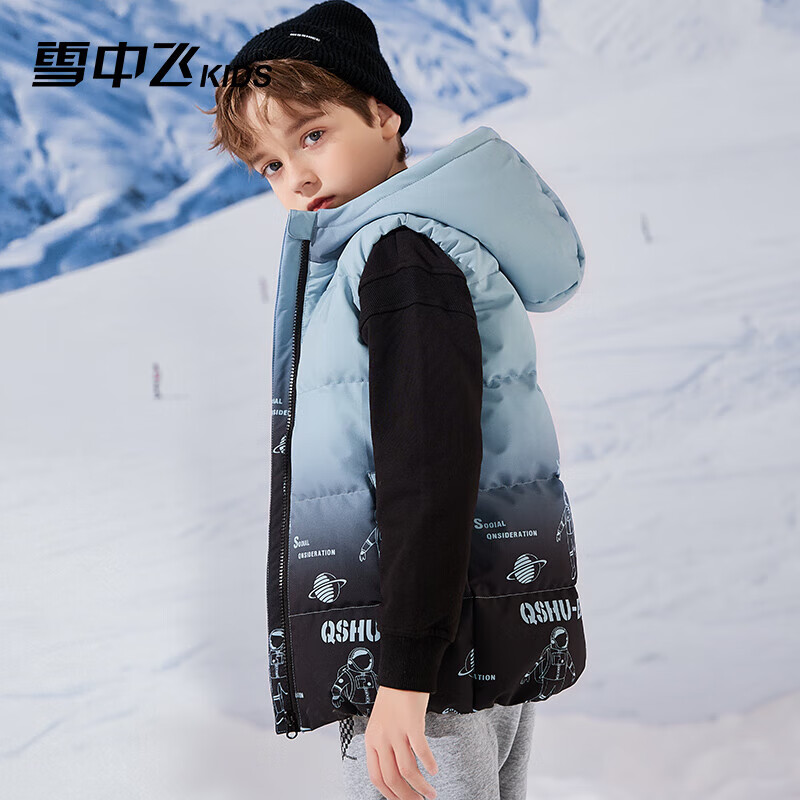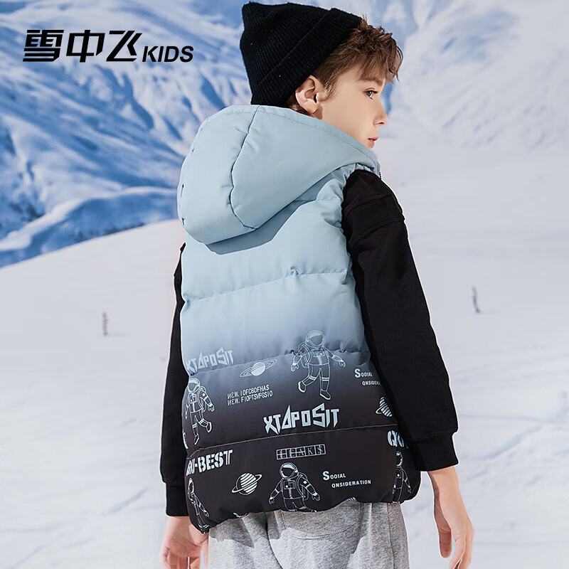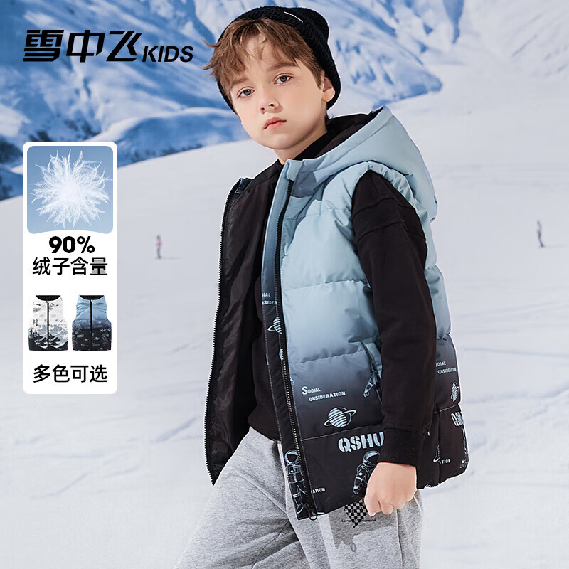 雪中飞儿童羽绒马甲洋气男童中大童坎肩加厚羽绒背心雾蓝色160cm价格:439.00元!