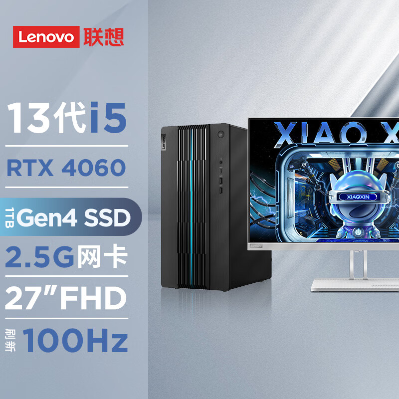 联想(Lenovo)GeekPro 2023 13代酷睿i5设计师游戏台式电脑主机(i5-13400F RTX4060 16G 1TBSSD)27英寸IPS套机价格:6899.00元!