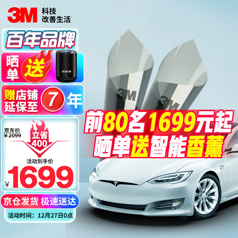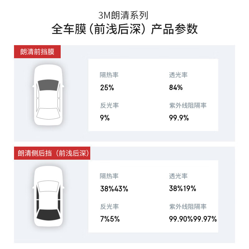 3M汽车贴膜朗清定制前浅后深新能源特斯拉玻璃车膜太阳隔热车窗膜价格:2099.00元!