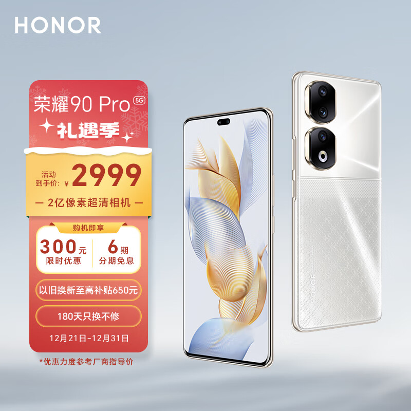 荣耀90 Pro 2亿像素超清相机 零风险调光护眼屏 5000mAh轻薄长续航 12GB+256GB 星钻银 5G价格:2919.00元!