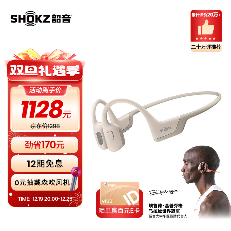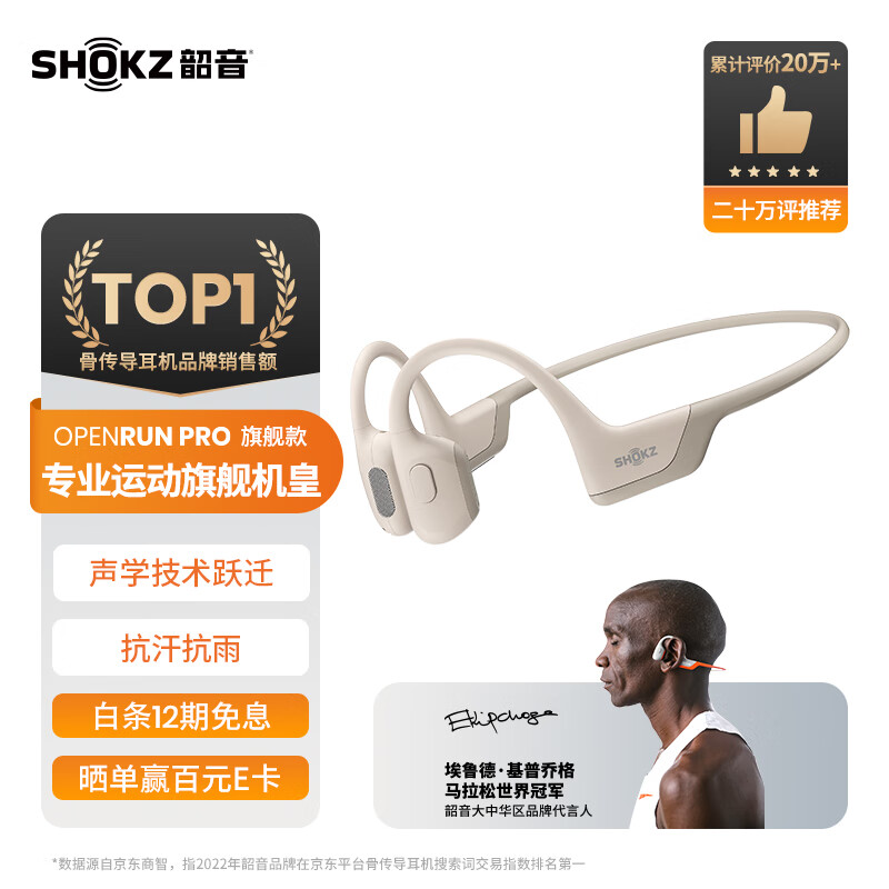 SHOKZ韶音 OpenRun Pro骨传导蓝牙耳机开放式耳机运动无线耳骨传导耳机跑步骑行不入耳佩戴S810/S811 沙漠黄价格:1128.00元!
