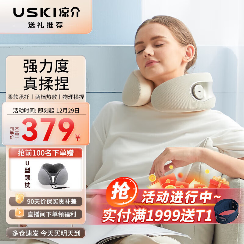 凉介(USKI)颈椎按摩器按摩仪u型按摩枕肩颈仿生揉捏颈部加热按摩器 男女生日礼物 新年礼物 年会礼品 MT01奶油杏棕【小牛角物理揉捏】-芯升级价格:499.00元!