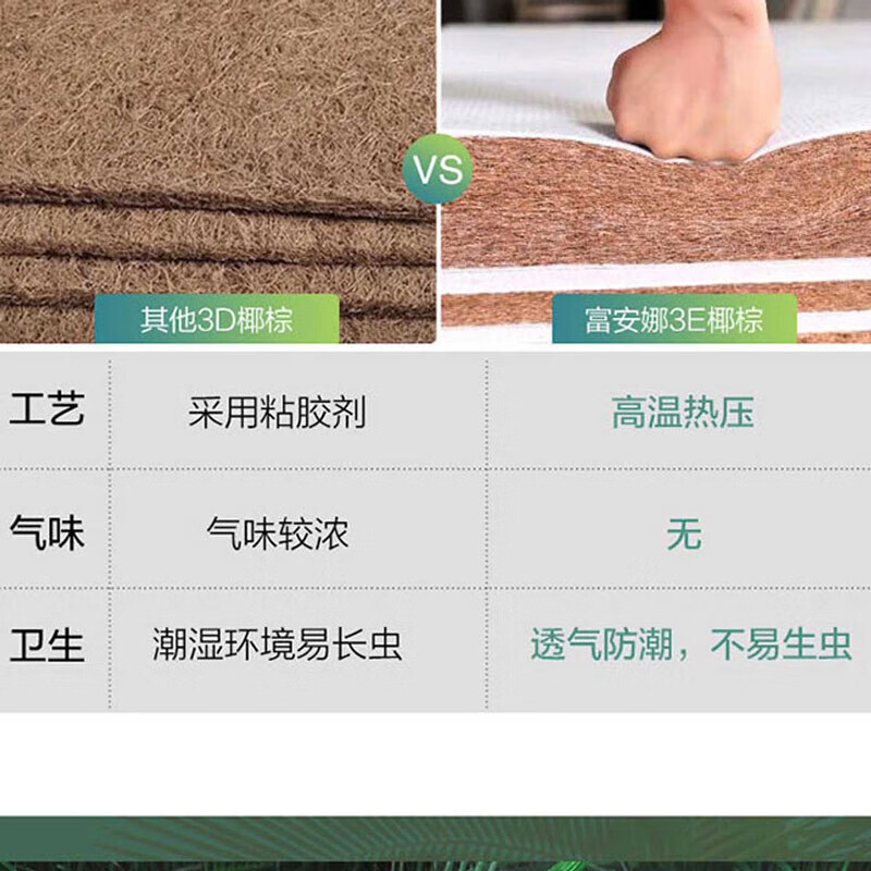 富安娜床垫 偏硬护脊椰棕床垫 席梦思防螨面料邦尼尔弹簧床垫 1.8米*2米价格:1189.00元!