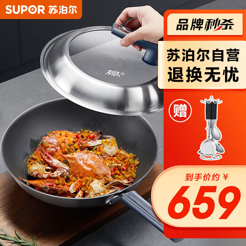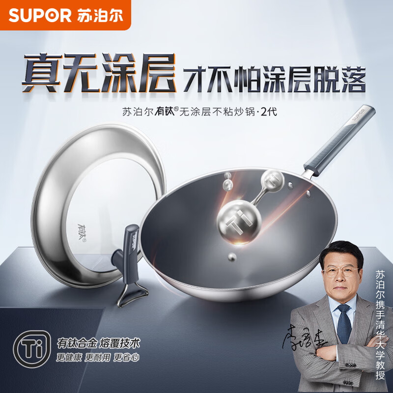 苏泊尔SUPOR 有钛2代无涂层不锈钢不粘炒锅32cm炒菜锅EC32JGC03价格:659.00元!