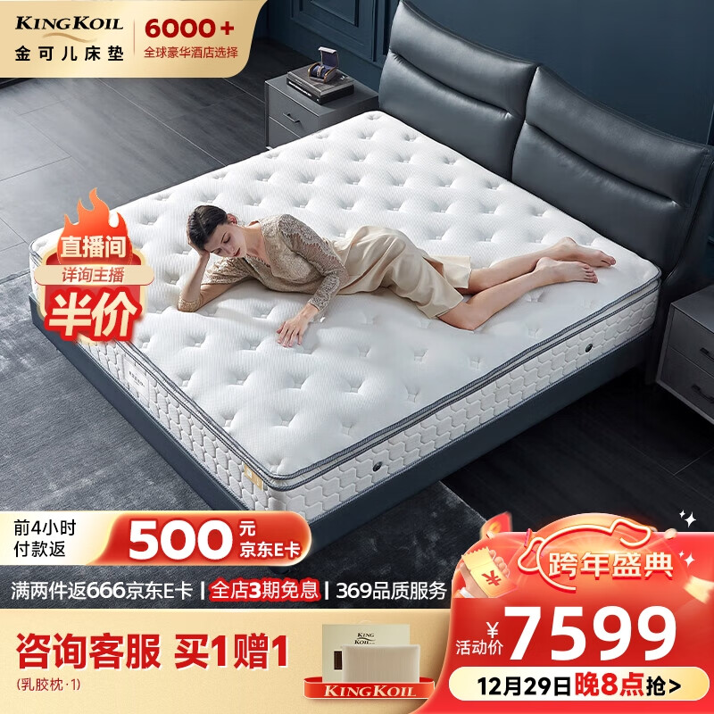 金可儿(Kingkoil)弹簧床垫三区独袋弹簧世茂酒店升级款喜来登+ 1.8米*2米价格:7899.00元!