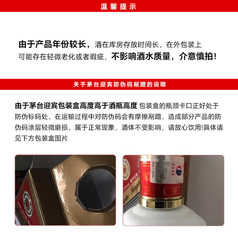 茅台官方授权 迎宾酒 酱香型白酒 迎宾送礼收藏商务宴请 高度酒水 53度 500mL 6瓶 老迎宾 2018年份价格:1999.00元!