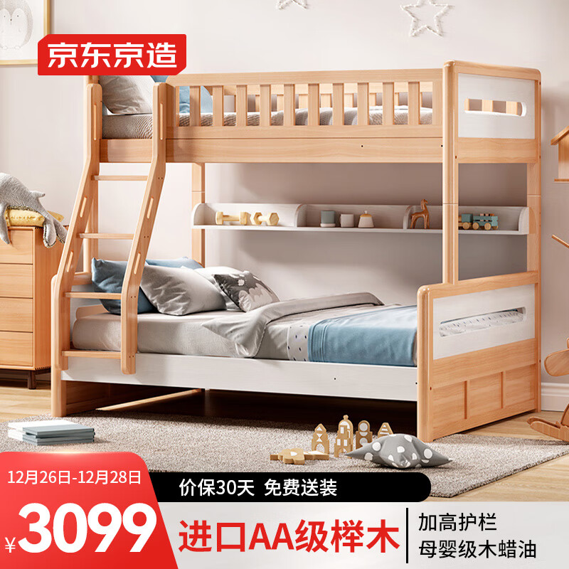 京东京造儿童床 AA级榉木|加高护栏|天然木蜡油 实木上下床高低床BK01价格:3299.00元!