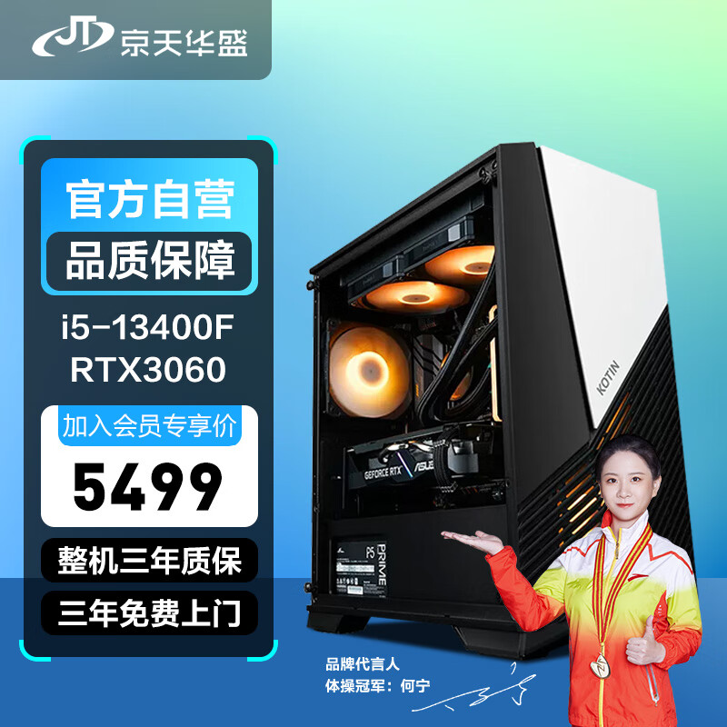 京天华盛 战无畏536T 新i5-13400F/RTX3060 12G/B760/16G/1TB固态电竞DIY游戏直播台式机组装电脑主机UPC价格:5699.00元!